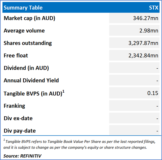 Company Overview: Strike Energy Limited (ASX: STX) is an Australia-based energy and fertilizer company engaged in the exploration and development of oil and gas resources in Australia. Its segments include Producing Assets and Other. Its projects include Perth Basin, Greater Erregulla Gas, West Erregulla, Project Haber, Perth Basin Geothermal, and Walyering. Kalkine’s Daily Report covers the Key Financial Metrics, Risks, Outlook, Technical Analysis along with the Valuation, Target Price, and Recommendation on the stock.