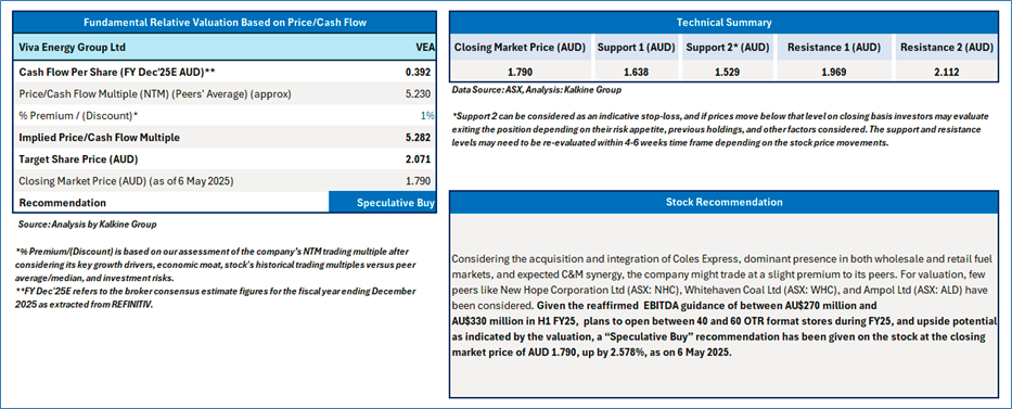 Section 2.0: Viva Energy Group Ltd (‘Speculative Buy’ at AUD 1.790, closing market price per share as on 6 May 2025)