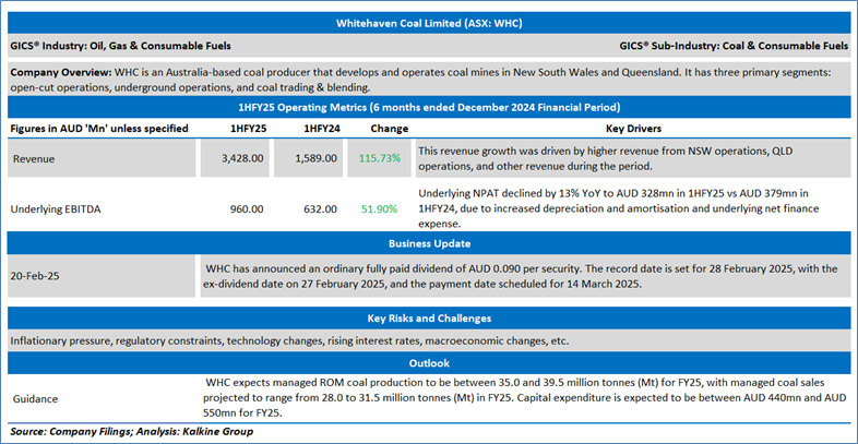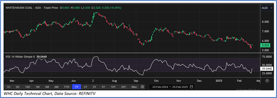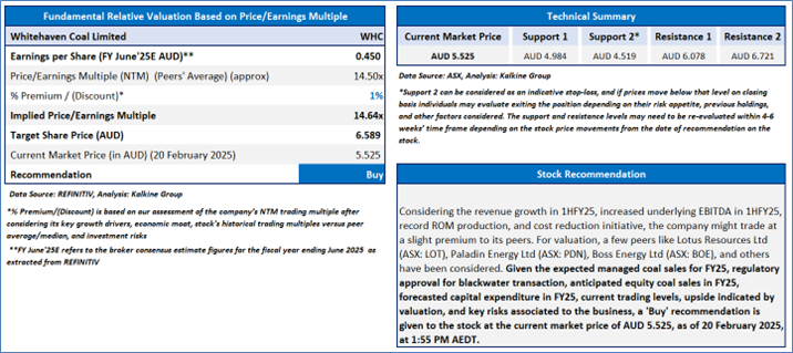 Section 2.0: Whitehaven Coal Limited (‘Buy’ at AUD 5.525, current market price per share as on 20 February 2025, at 1:55 PM AEDT)