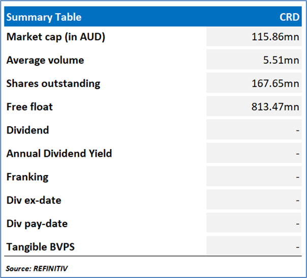 Company Overview: Conrad Asia Energy Limited (ASX: CRD) is an ASX-listed company engaged in the exploration, assessment, and development of gas resources across Asia. Kalkine’s Daily Report covers the Key Financial Metrics, Risks, Outlook, and Technical Analysis along with the TTM-Based Valuation, Target Price, and Recommendation on the stock.