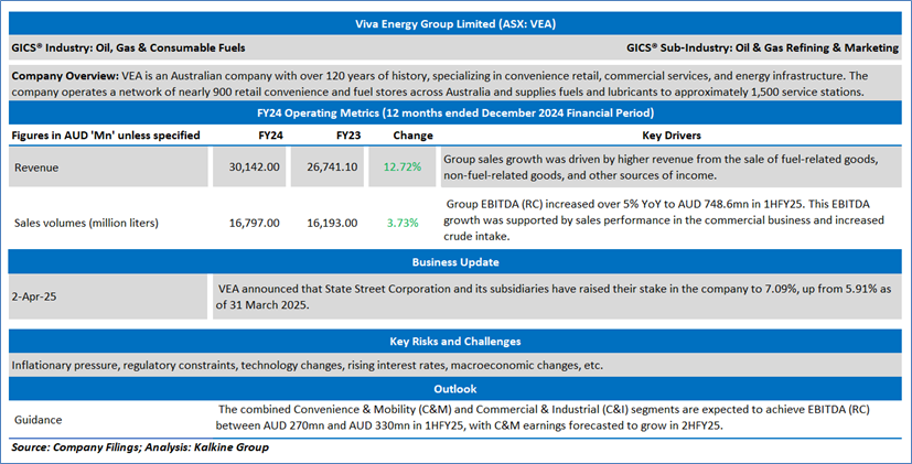 Section 2.0: Viva Energy Group Limited (‘Speculative Buy’ at AUD 1.430, closing market price per share as on 7 April 2025)
