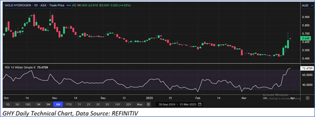 Considering that the stock has surpassed its R2 level, rally in share price, current trading level, and risks associated, the share price can face consolidation at the current levels. Hence, a ‘Sell’ recommendation is given on the stock at the current price of AUD 0.645 (as of 31 March 2025, at 11:20 AM AEDT).