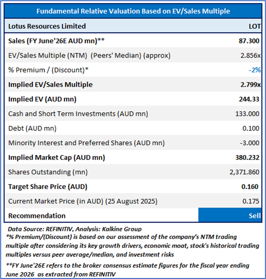 Considering that the stock has reached it R2 level, macroeconomic uncertainty, share price movement, current trading level, and risks associated, the share price can face consolidation at the current levels. Hence, a ‘Sell’ recommendation is given on the stock at the current market price of AUD 0.175, at 11:26 AM AEST, as of 25 August 2025.
