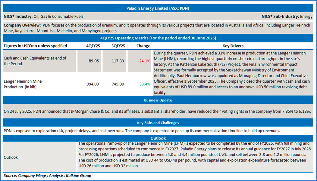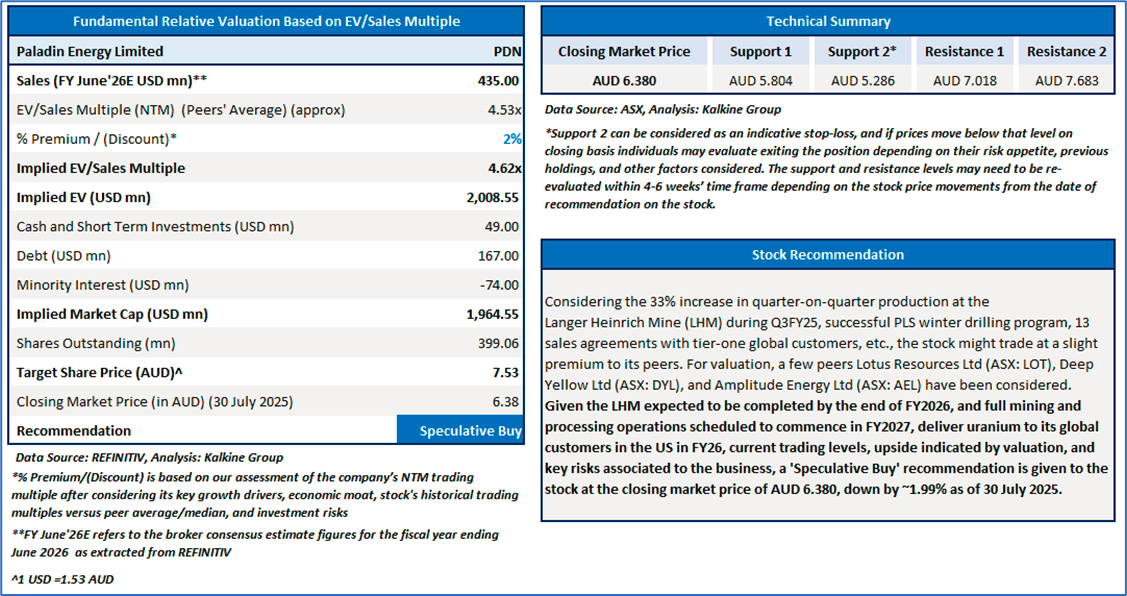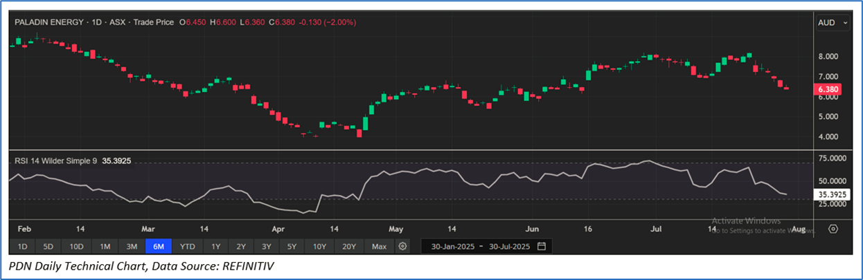 Section 2.0: Paladin Energy Limited (‘Speculative Buy’ at AUD 6.38, closing market price per share as on 30 July 2025)
