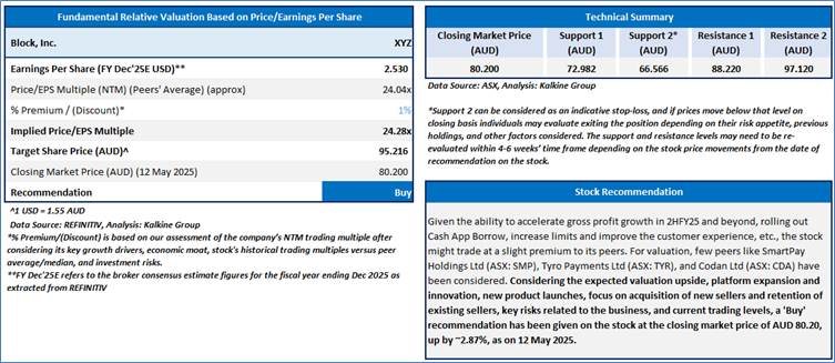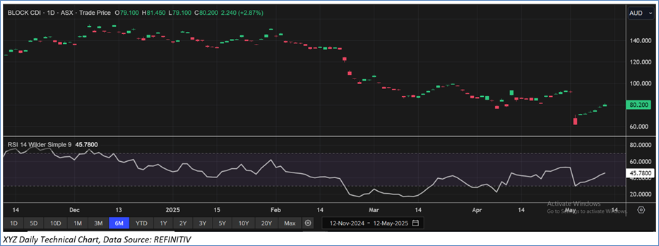 Section 2.0: Block, Inc. (ASX: XYZ) (‘Buy’ at AUD 80.20, closing market price per share as on 12 May 2025)