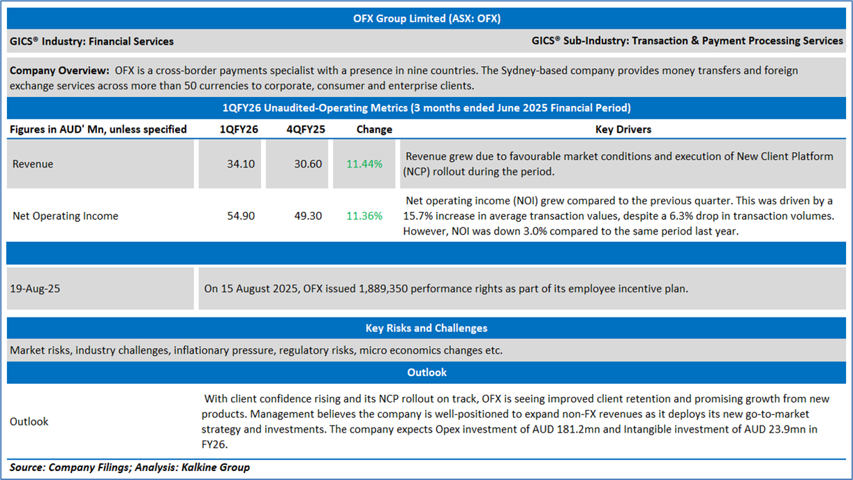 The stock has down by ~39.33% in the last six months, and over the past nine months, it has decreased by ~39.55%. The stock has a 52-week low and 52-week high of AUD 0.665 and AUD 2.390, respectively, and is currently trading below the 52-week high-low average. OFX was last covered in a report dated ’29 July 2025’.