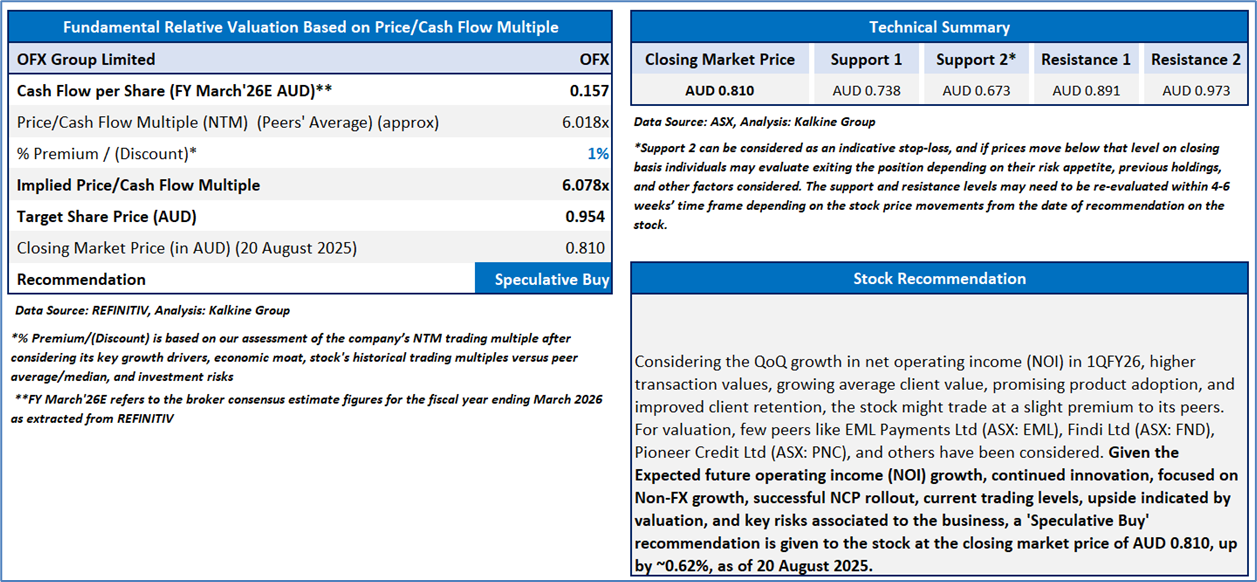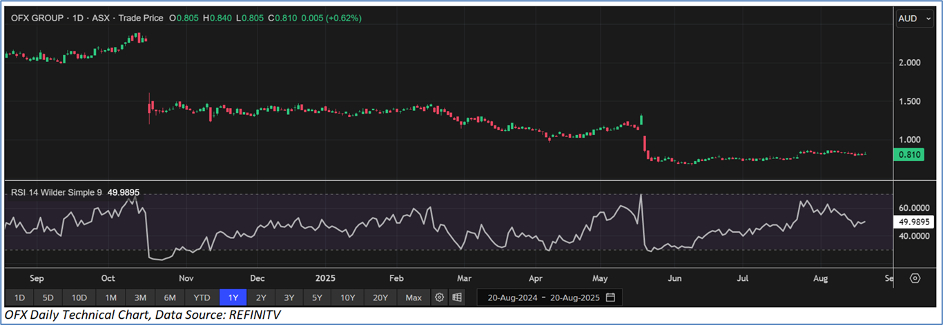 Section 2.0: OFX Group Limited (‘Speculative Buy’ at AUD 0.810, closing market price per share as on 20 August 2025)