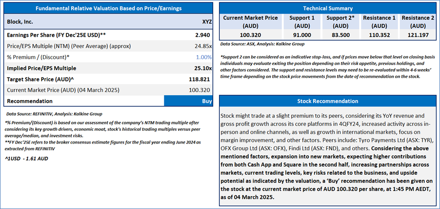 Section 2.0: Block, Inc. (‘Buy’ at AUD 100.32, current market price per share as on 04 March 2025)