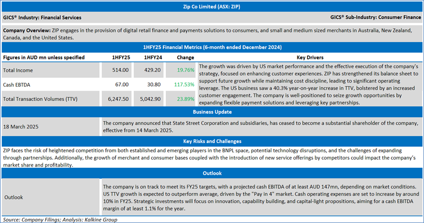 The stock has witnessed a dip of ~24.2% in last one months, and over the last six months, it has decreased by ~21.9%. The stock has a 52-week low and 52-week high of AUD 1.055 and AUD 3.560, respectively and is currently trading below the 52-week high-low average. ZIP was last covered in a report dated ’27 February 2025’.
