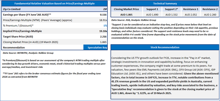 Section 2.0: Zip Co Limited (‘Speculative Buy’ at AUD 1.865, closing market price per share as on 19 March 2025)