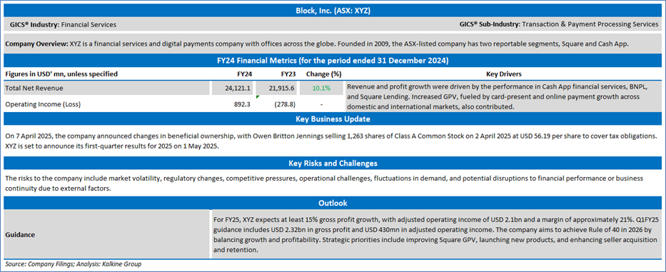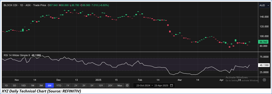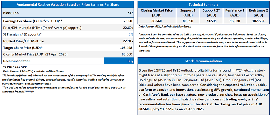Section 2.0: Block, Inc. (ASX: XYZ) (‘Buy’ at AUD 88.560, closing market price per share as on 23 April 2025)