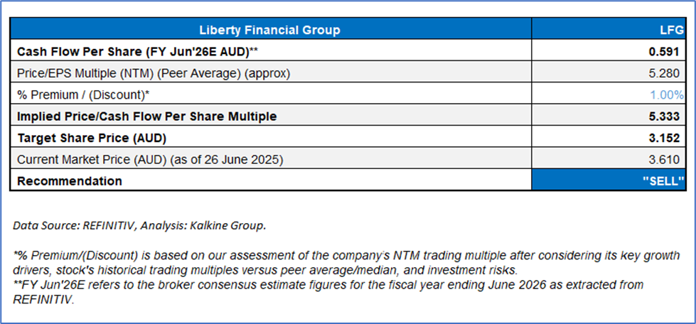 Stock might trade at a slight premium to its peers considering investment grade of BBB with stable outlook by Standard and Poor’s, profitable growth in competitive market, and continued portfolio growth through diversification in H1 FY25. For conducting the valuation, the following peers have been considered: Pepper Money Ltd (ASX: PPM), Resimac Group Ltd (ASX: RMC), and Findi Ltd (ASX: FND).