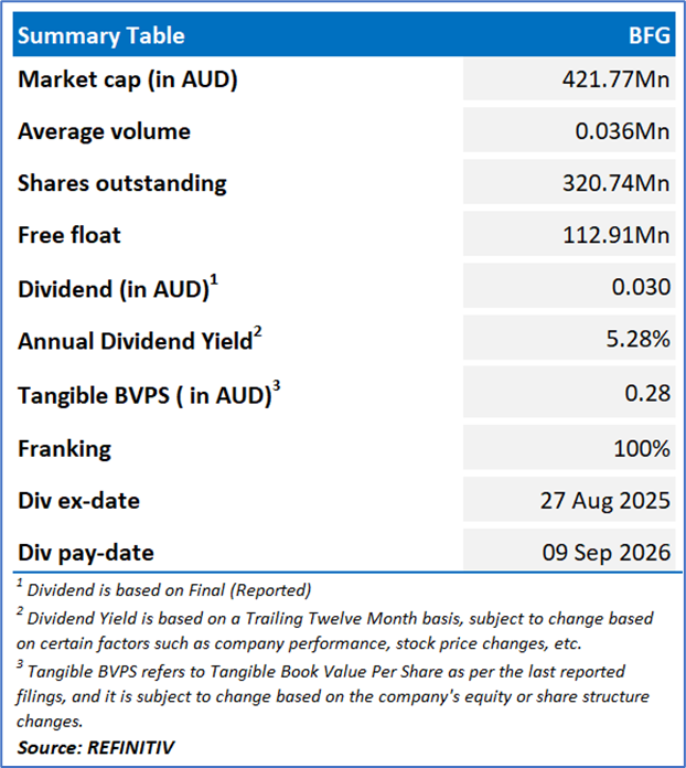 Bell Financial Group Limited is an Australia-based company engaged in the financial services business. It provides full service and online broking, capital markets and financial advisory services to private, institutional and corporate clients.