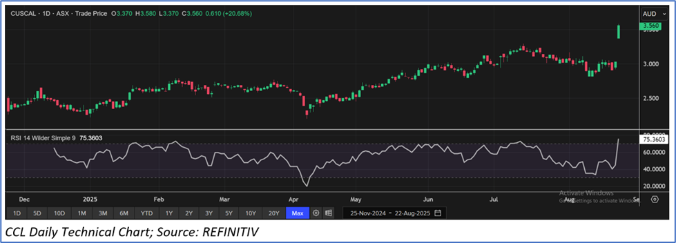 Considering the rally in share price movement, current trading level, and risks associated, the share price can witness resistance at the current levels. Hence, a ‘Sell’ recommendation is given on the stock at the current market price of AUD 3.56, as of 22 August 2025 at 10:27 AM AEST.