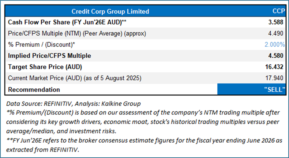 The stock might trade at a slight premium to its peers considering its 5% YoY revenue jump and 86% YoY growth in net profit in FY25, increased final dividend, FY26 investment and profit growth guidance, among other factors. For conducting the valuation, peers including Fleetpartners Group Ltd (ASX:FPR), Pepper Money Ltd (ASX:PPM), OFX Group Ltd (ASX:OFX) and others have been considered.
