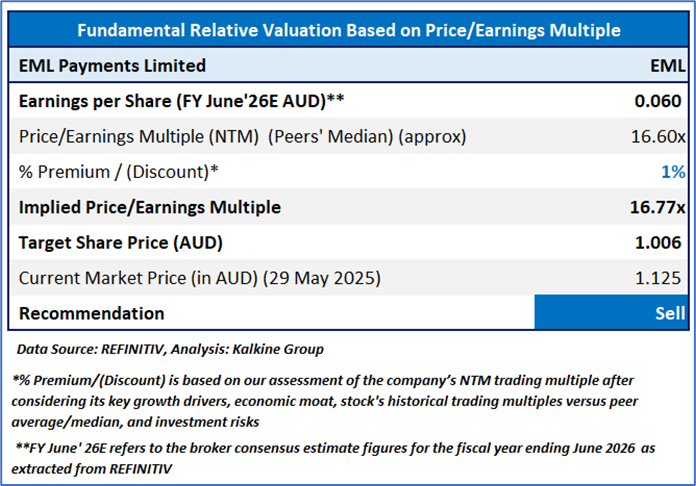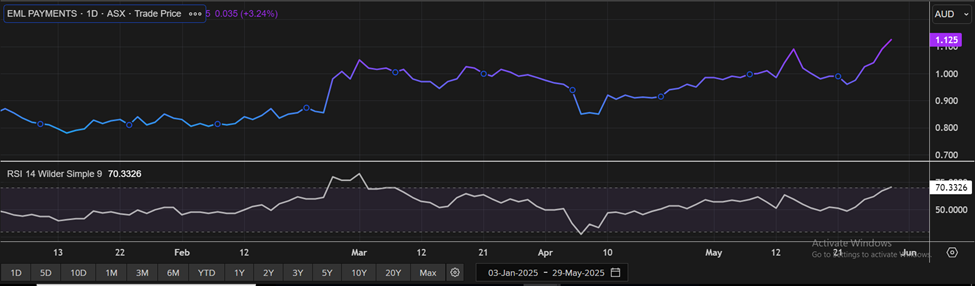 Considering that the stock has surpassed its R1 level, rally in share price movement, current trading level, and risks associated, the share price can face consolidation at the current levels. Hence, a ‘Sell’ recommendation is given on the stock at the current price of AUD 1.125 (as of 29 May 2025, at 10:40 AM AEST).