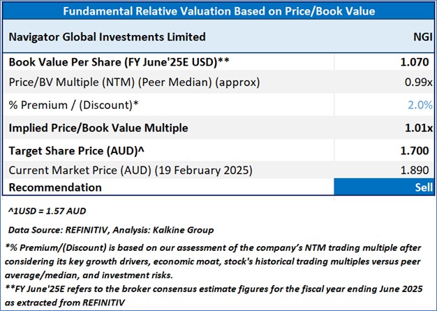NGI is expected to trade at a slight premium to its peers considering increase in adjusted EBITDA in 1HFY25, growing free cash flows, among other factors. For conducting the valuation, the following peers have been considered: Fleetpartners Group Ltd (ASX: FPR), Qualitas Ltd (ASX: QAL), Pacific Current Group Ltd (ASX: PAC), and others.