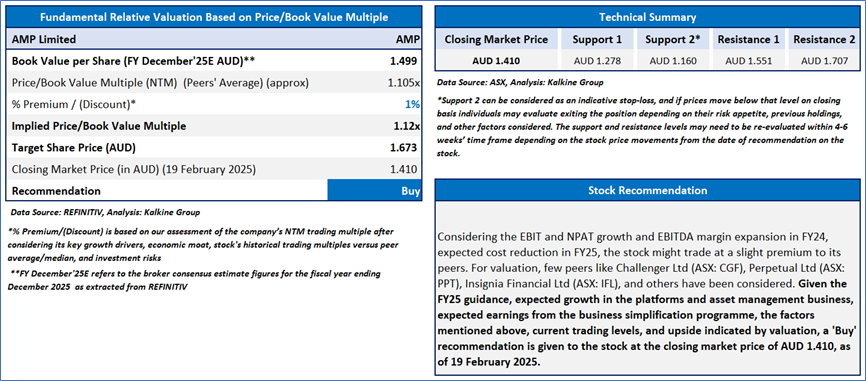 Section 2.0: AMP Ltd (ASX: AMP) (‘Buy’ at AUD 1.410, Closing Market Price as on 19 February 2025)