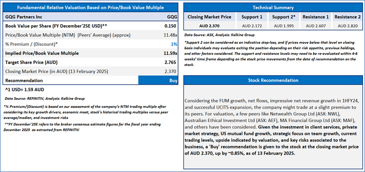 Section 2.0: GQG Partners Inc. (‘Buy’ at AUD 2.370, closing market price per share as on 13 February 2025)