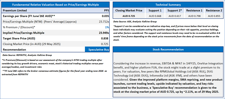 Section 2.0: Praemium Limited (‘Speculative Buy’ at AUD 0.725, closing market price per share as on 29 May 2025)