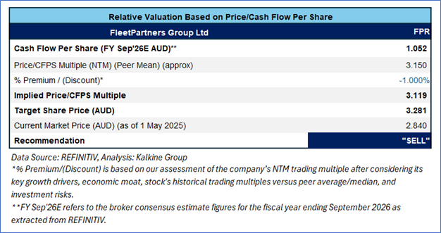 FPR is expected to trade at a slight discount to its peers considering the cost pressures, decrease EOL income, and increased operating expenses in FY24. For conducting valuation, the following peers have been considered: Plenti Group Ltd (ASX: PLT), Moneyme Ltd (ASX: MME), and Credit Corp Group Ltd (ASX: CCP).
