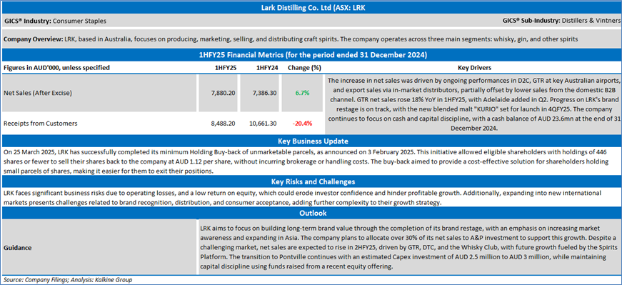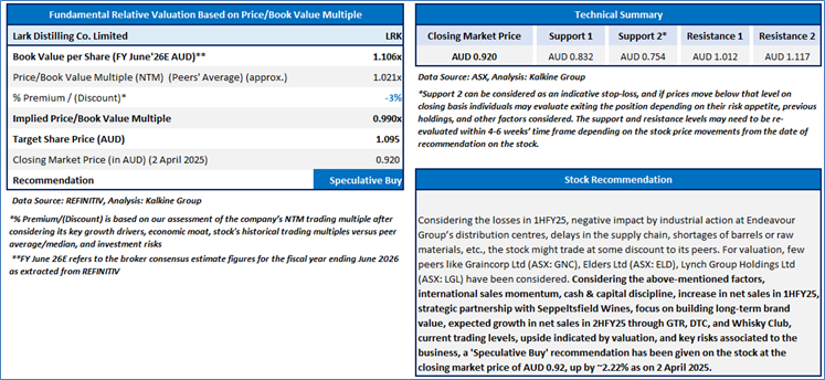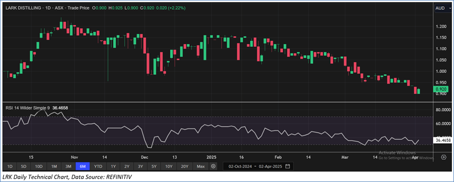 Section 2.0: Lark Distilling Co. Limited (‘Speculative Buy’ at AUD 0.920, closing market price per share as on 2 April 2025)