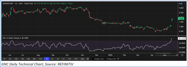 Given its current trading levels, recent rally in the share price, and risks associated, it is prudent to sell the stock at the current levels. Hence, a ‘Sell’ recommendation is given on the stock at the current market price of AUD 7.87, as of 16 May 2025 at 2:33 PM AEST.