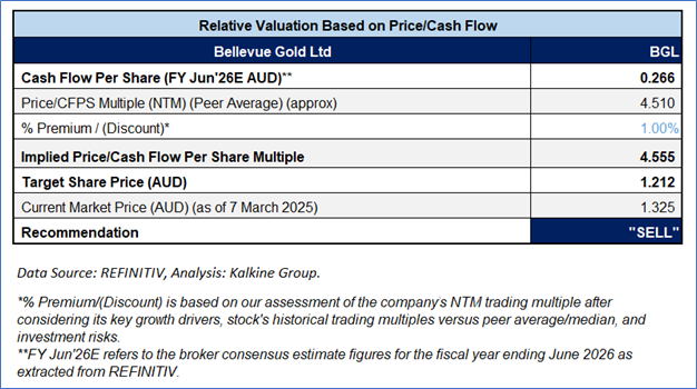BGL is expected to trade at a slight premium to its peers considering the 353.17% and 129.50% increase in H1 FY25’s Revenue and Gross Profit, respectively. For conducting valuation, the following peers have been considered: Westgold Resources Ltd (ASX: WGX), Vault Minerals Ltd (ASX: VAU), and Catalyst Metals Ltd (ASX: CYL).