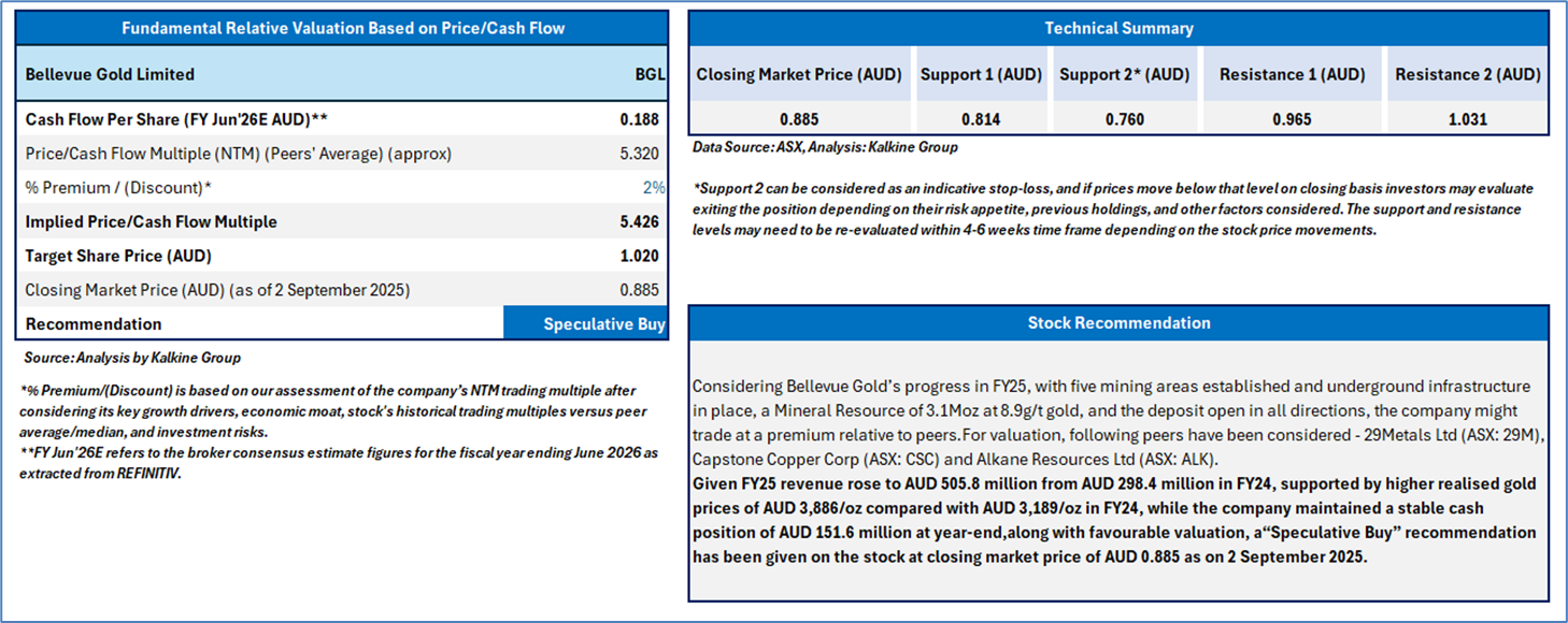 Section 2.0: Bellevue Gold Ltd - (‘Speculative Buy’ at AUD 0.885, closing market price per share as on 2 September 2025)