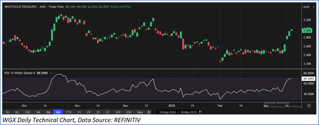 WGX is expected to trade at a slight discount to its peers considering negative bottom-line in H1FY25, downgrading of FY25 production guidance, revised AISC guidance for FY25, lower production at Bluebird-South Junction and Beta Hunt. For conducting valuation, the following peers have been considered: Ramelius Resources Ltd (ASX: RMS), Bellevue Gold Ltd (ASX: BGL), Regis Resources Ltd (ASX: RRL), and others were considered.