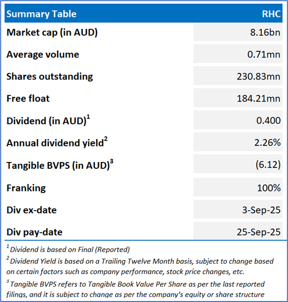 Company Overview: Ramsay Health Care Limited (ASX: RHC) is a provider of hospital and healthcare services in Australia, Europe and the United Kingdom. Its segments include Australia, the UK, France and the Nordics. Its businesses include Ramsay Australia, Ramsay Sante, Ramsay UK, and Elysium Healthcare. Kalkine’s Daily Report covers the Key Financial Metrics, Risks, Outlook, Technical Analysis along with the Valuation, Target Price, and Recommendation on the stock.