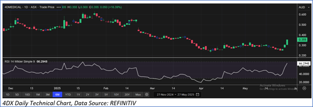 Considering that the stock has surpassed its R2 level, rally in share price movement, current trading level, and risks associated, the share price can face consolidation at the current levels. Hence, a ‘Sell’ recommendation is given on the stock at the current price of AUD 0.355 (as of 27 May 2025, at 2:25 PM AEST).