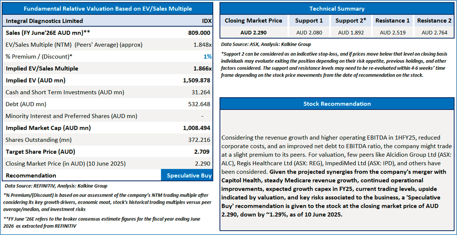 Section 2.0: Integral Diagnostics Limited (‘Speculative Buy’ at AUD 2.290, closing market price per share as on 10 June 2025)