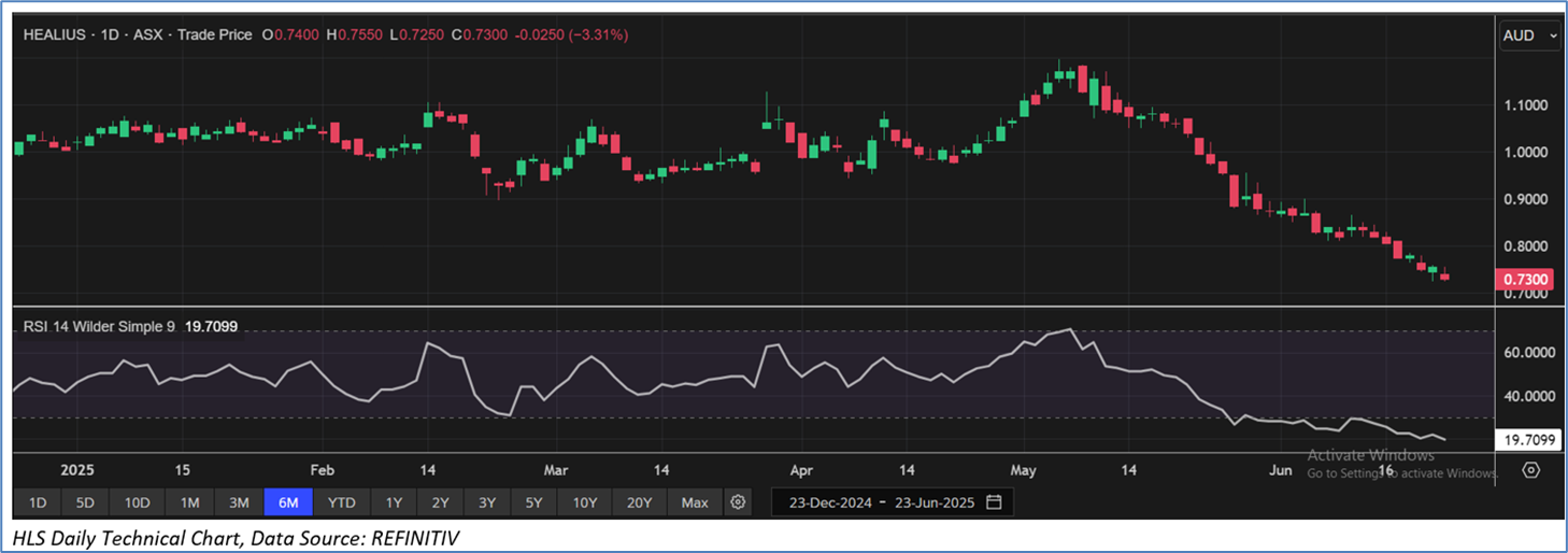 The stock has witnessed a decline of ~23.6% in the last one month, and over the last one year, it has declined by ~33.2%. The stock has a 52-week low and 52-week high of AUD 0.725 and AUD 1.860, respectively and is currently trading close to its 52-week low level. HLS was last covered in a report dated ’28 May 2025’.