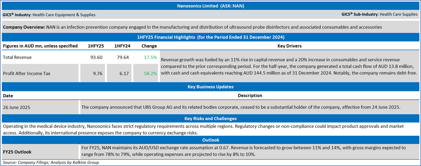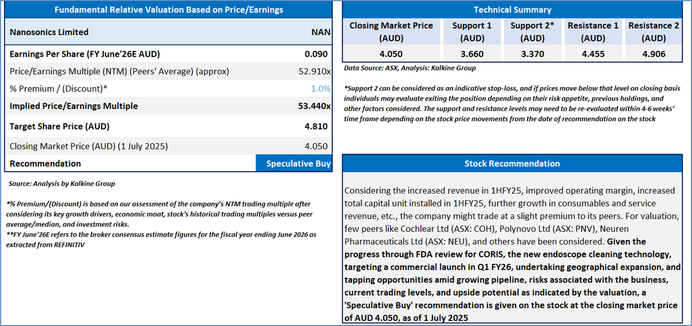 Section 2.0: Nanosonics Limited (‘Speculative Buy’ at AUD 4.050, closing market price per share as on 1 July 2025)