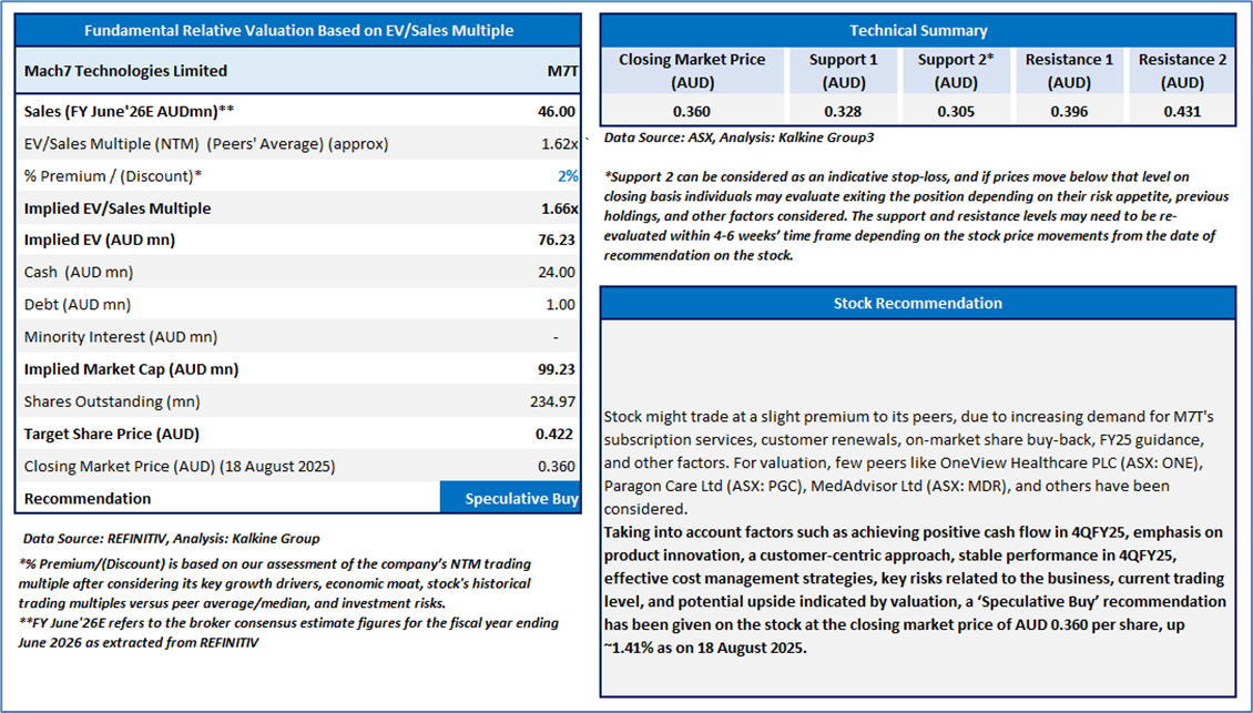 Section 2.0: Mach7 Technologies Limited (‘Speculative Buy’ at AUD 0.360, closing market price per share as on 18 August 2025)