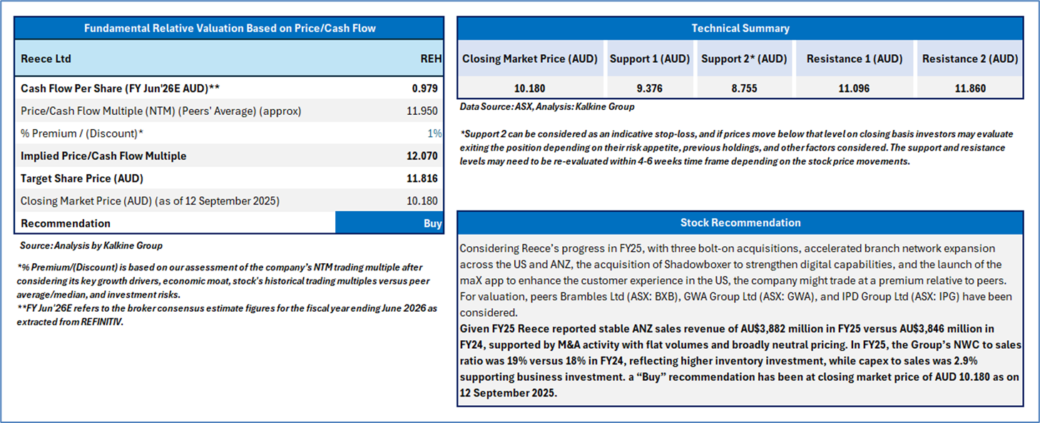 Section 2.0: Reece Ltd - (‘Buy’ at AUD 10.180, closing market price per share as on 12 September 2025)