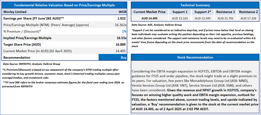 Section 2.0: Worley Limited (‘Buy’ at AUD 14.405, Current Market Price as on 2 April 2025)