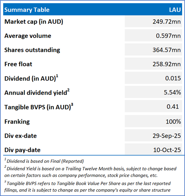Company Overview: Lindsay Australia Limited (ASX: LAU) is an Australian company specializing in integrated transport, logistics, and rural supply services. Its activities include transporting refrigerated and general freight. Kalkine’s Daily Report covers the Key Financial Metrics, Risks, Outlook, Technical Analysis along with the Valuation, Target Price, and Recommendation on the stock.