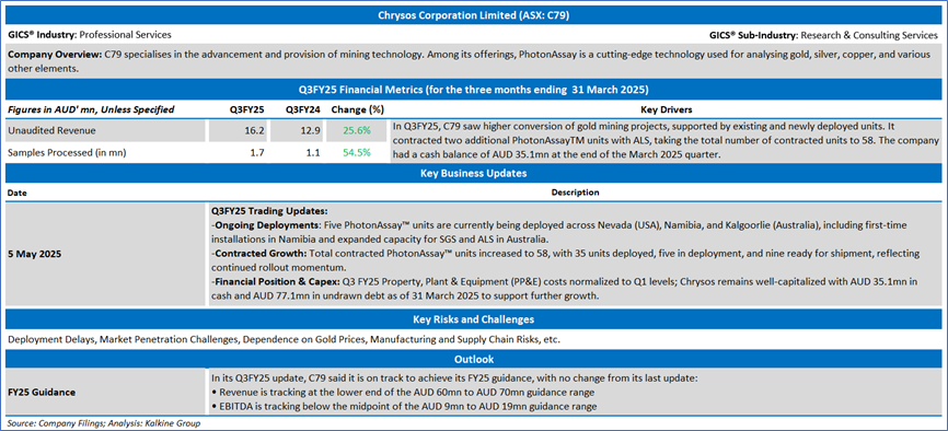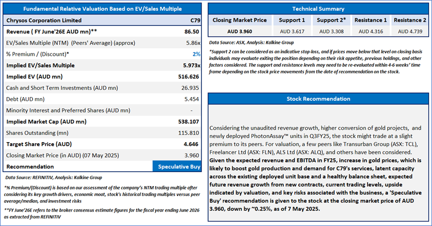 Section 2.0: Chrysos Corporation Limited (ASX: C79) (‘Speculative Buy’ at AUD 3.960, Closing Market Price as on 7 May 2025)