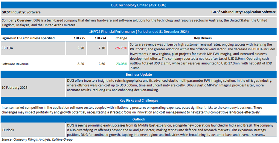 The stock has decreased by ~16.5% in last one month, and over the last three months, it has moved down by ~24.3%. The stock has a 52-week low and 52-week high of AUD 1.045 and AUD 3.290, respectively and is currently trading below the 52-week high-low average. DUG was last covered in a report dated ’06 February 2025’.