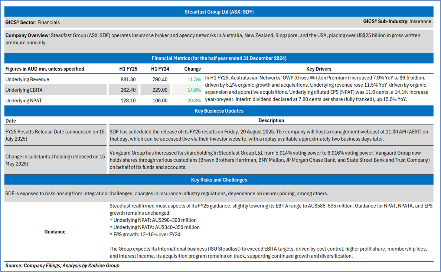 Section 2.0: Steadfast Group Ltd (‘Buy’ at AUD 5.990, closing market price per share as on 17 July 2025)