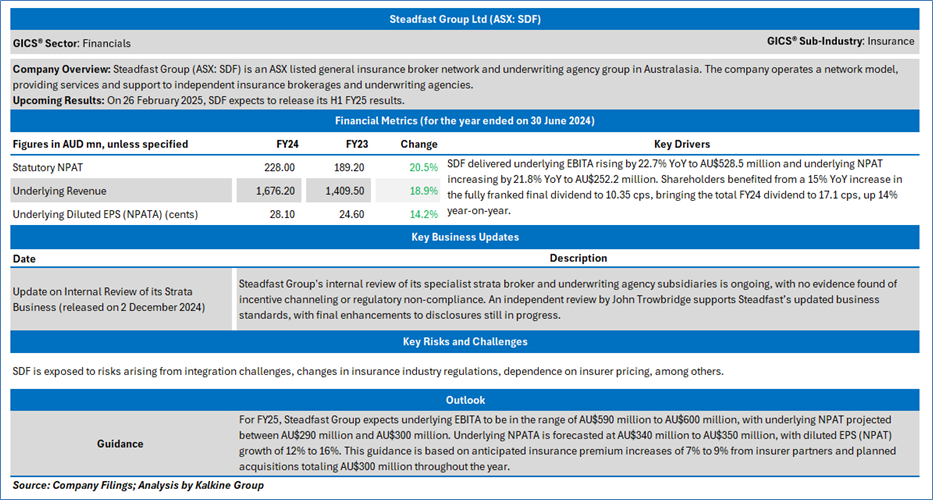 Section 2.0: Steadfast Group Ltd (‘Buy’ at AUD 5.780, closing market price per share as on 11 February 2025)