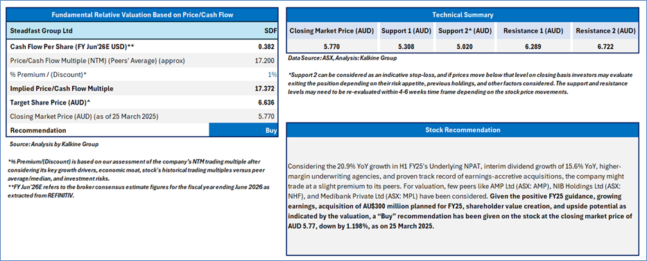 Section 2.0: Steadfast Group Ltd (‘Buy’ at AUD 5.770, closing market price per share as on 25 March 2025)