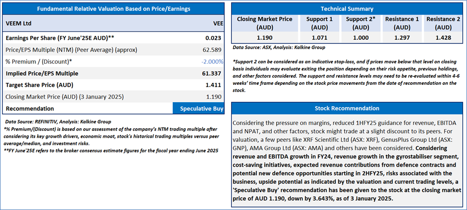Section 2.0: VEEM Ltd (‘Speculative Buy’ at AUD 1.190, closing market price per share as on 3 January 2025)