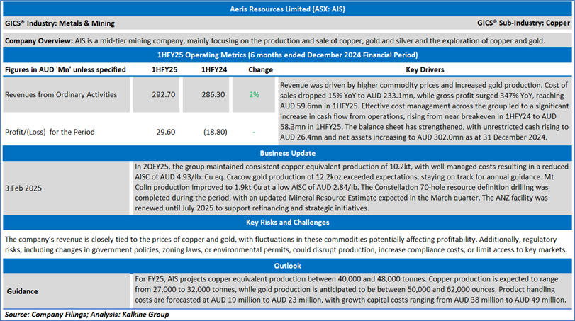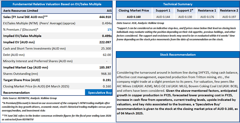 Section 2.0: Aeris Resources Limited (‘Speculative Buy’ at AUD 0.160, closing market price per share as on 4 March 2025)