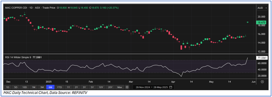 MAC Copper Limited (ASX: MAC) is currently trading with 0.46mn volumes.