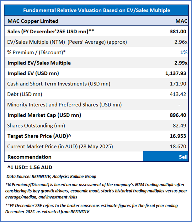 Stock might trade at a slight premium to its peers considering the reduced interest costs, recent acquisition news, and forecasted production in next 2 years. For conducting the valuation, the following peers have been considered: Pilbara Minerals Ltd (ASX: PLS), Sandfire Resources Ltd (ASX: SFR), and Bellevue Gold Ltd (ASX: BGL) have been considered.