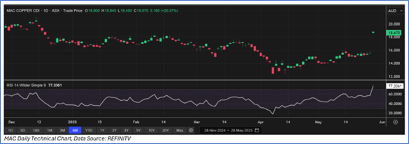 MAC Copper Limited (ASX: MAC) is currently trading with 0.46mn volumes.