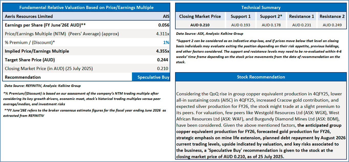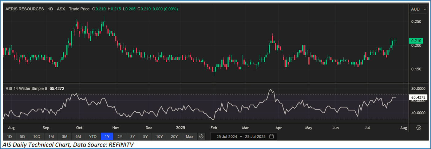 Section 2.0: Aeris Resources Limited (‘Speculative Buy’ at AUD 0.210, closing market price per share as on 25 July 2025)